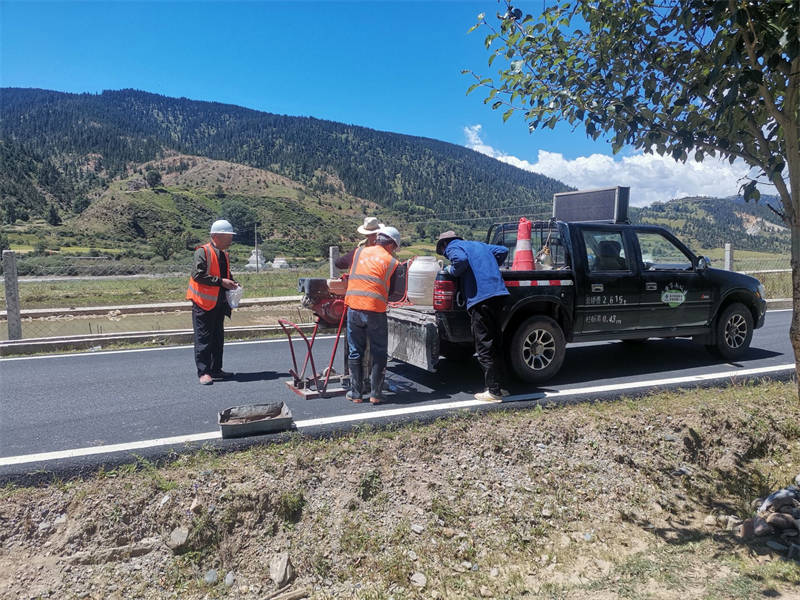 經(jīng)過5天4夜連續(xù)奮戰(zhàn),檢測小組克服高海拔、缺氧、寒冷等困難,完成捧塔鄉(xiāng)至兩河口資源公路、熱柯大橋、澤木橋等12個扶貧檢測項目,累計檢測里程達311.7公里,抽檢了路面厚度、路面強度、梁板強度、波形護欄鍍鋅層厚度、立柱壁厚等數(shù)十個參數(shù),圓滿完成了本次扶貧幫扶檢測任務(wù)。