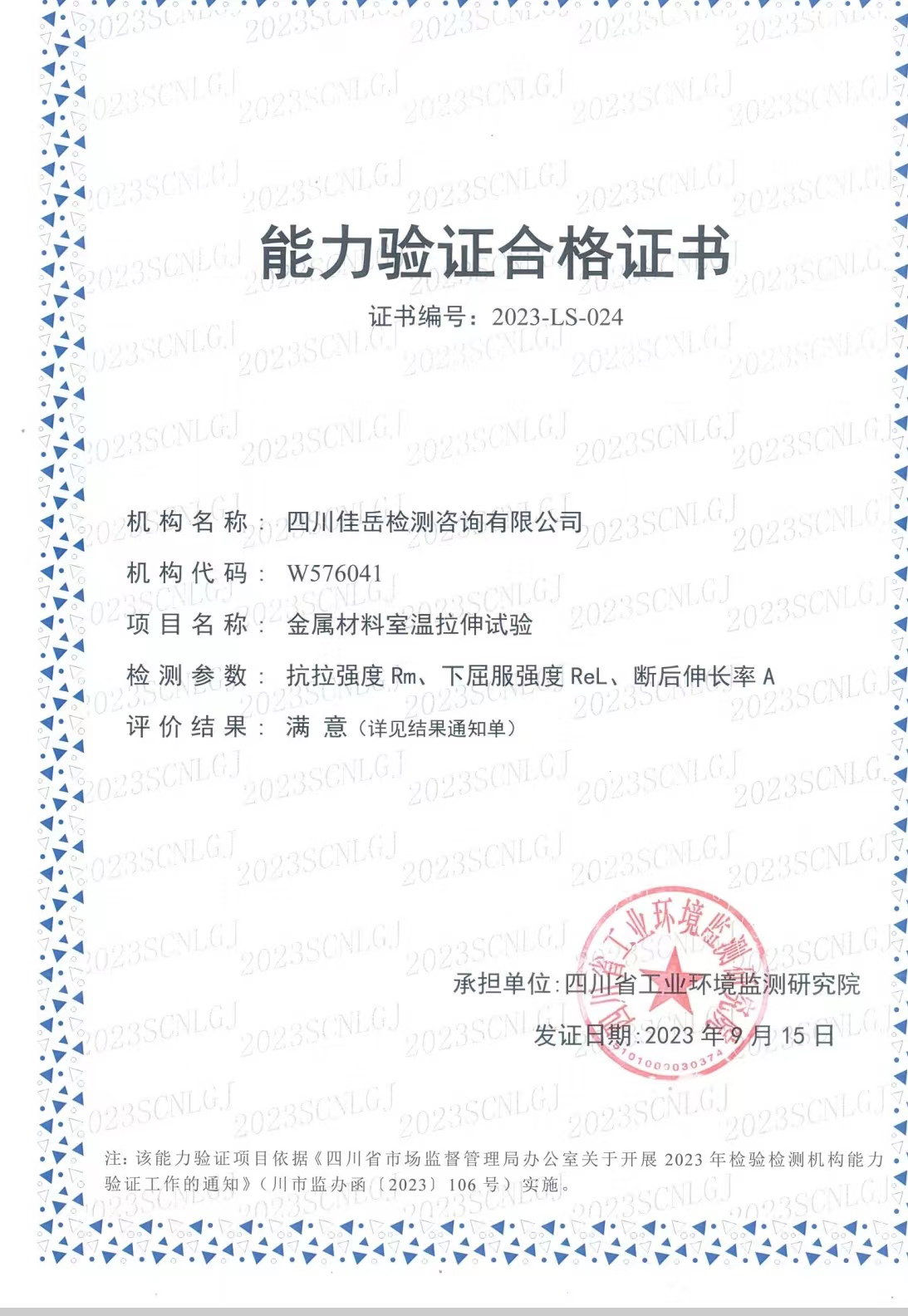 近日,四川省市場監(jiān)督管理局公布2023年能力驗證結果,雅安交建集團所屬四川佳岳檢測咨詢公司參加的保溫材料導熱系數(shù)檢測、室內環(huán)境污染物甲醛檢測、水泥物理性能檢測、金屬材料室溫拉伸試驗等5項能力驗證,評價結果均為“滿意”。