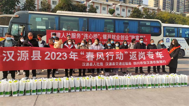 蜀通公司按照“政府牽頭、部門協(xié)同,統(tǒng)一組織、供需對(duì)接,全程管控、安全溫馨”要求,提前謀劃制定“春風(fēng)行動(dòng)”運(yùn)行方案,提供“點(diǎn)對(duì)點(diǎn)、一站式”專班運(yùn)輸服務(wù),加強(qiáng)駕駛員安全教育、服務(wù)質(zhì)量培訓(xùn)及車輛衛(wèi)星定位視頻監(jiān)控,確保安全有序地將農(nóng)民工輸送至各個(gè)崗位。同時(shí),在各車站售票窗口、行包安檢、檢票等區(qū)域設(shè)置“春風(fēng)行動(dòng)農(nóng)民工綠色通道”,方便農(nóng)民工前往車站購票、乘車;推出石棉至成都、雅安各1車次的“春風(fēng)行動(dòng)1元購票返崗福利”,鼓勵(lì)支持外出務(wù)工人員安全有序返崗;隨車配備方便食物、飲用水、紙巾等必要食品,提供暖心服務(wù)。