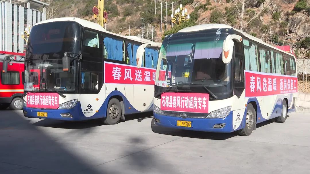 節(jié)后首日,集團所屬蜀通公司石棉車站內(nèi)2輛返崗專車整裝待發(fā),現(xiàn)場工作人員為外出務(wù)工人員送上裝有面包、牛奶、毛巾、政策宣傳手冊的“愛心大禮包”,并叮囑大家出門在外,要充分發(fā)揚石棉兒女勤勞勇敢、堅韌不拔的傳統(tǒng)和優(yōu)良作風(fēng),愛崗敬業(yè),努力工作,以吃苦耐勞站穩(wěn)腳跟、憑踏實肯干贏得信譽。隨后,在志愿者的引導(dǎo)幫助下,外出務(wù)工人員依次登車。