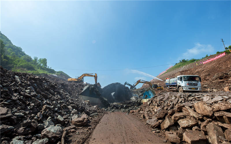 上午10點(diǎn),金雞關(guān)隧道開挖現(xiàn)場,多臺(tái)大型破碎機(jī)和灑水除塵設(shè)備同時(shí)按下啟動(dòng)鍵,建設(shè)的“沖鋒號(hào)”奏響。金雞關(guān)隧道開挖是整個(gè)項(xiàng)目取得突破性進(jìn)展的標(biāo)志,是路基鋪設(shè)和邊坡抗滑裝等施工開展的基礎(chǔ)。目前土方開挖已完成365萬方,邊坡施工已完成8級(jí),項(xiàng)目整體推進(jìn)有序,預(yù)計(jì)兩個(gè)月完成隧道部分開挖。