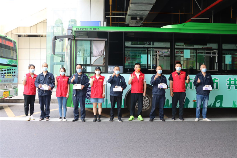 最后,青年團(tuán)員們帶著親手制作的40份防疫香囊、藿香正氣液、口罩等防疫消暑慰問(wèn)品,來(lái)到市區(qū)內(nèi)的各個(gè)公交車(chē)站點(diǎn)開(kāi)展了志愿者服務(wù)活動(dòng)。團(tuán)員志愿者們親手為公交駕駛員師傅送上了慰問(wèn)物質(zhì),關(guān)切詢(xún)問(wèn)他們的作息時(shí)間、身體狀況等,并感謝他們?yōu)槌鞘邪l(fā)展和群眾出行付出的辛苦勞動(dòng),同時(shí)叮囑大家在高溫季節(jié)一定要注意勞逸結(jié)合,做好防疫和防暑措施。