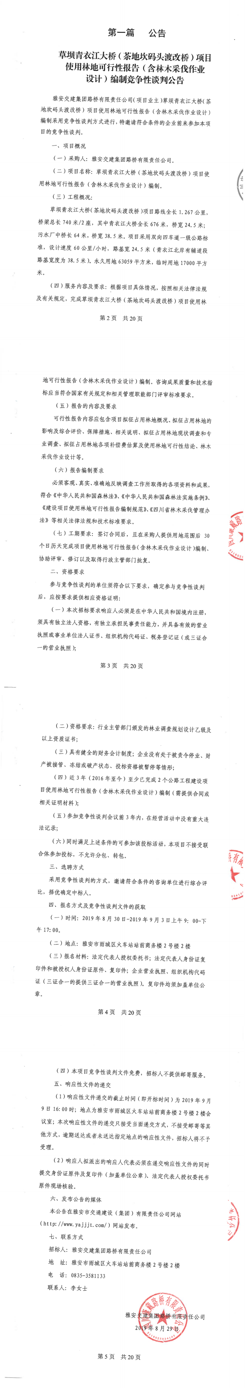 雅安交建集團路橋有限責任公司草壩青衣江大橋(茶地坎碼頭渡改橋)使用林地可行性報告(含林木采伐作業(yè)設計)編制競爭性談判公告