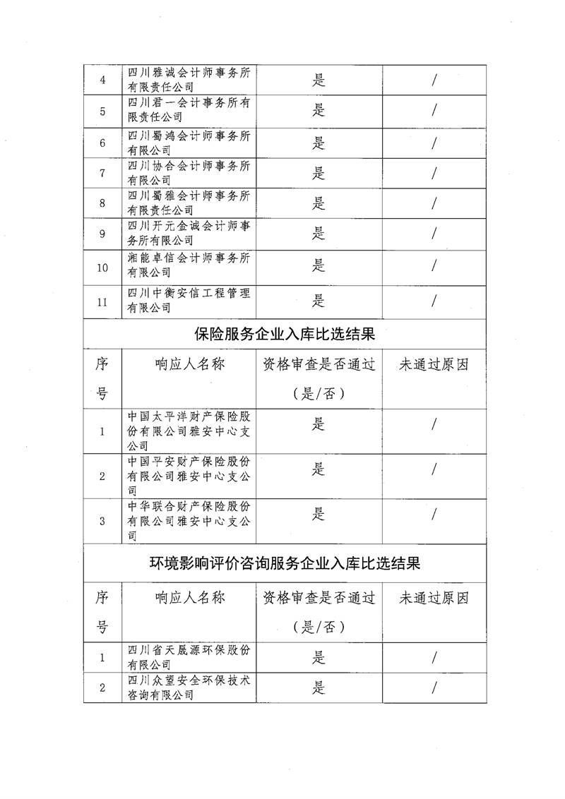 雅安交通建設(shè)(集團)有限責(zé)任公司比選入庫補錄結(jié)果公示