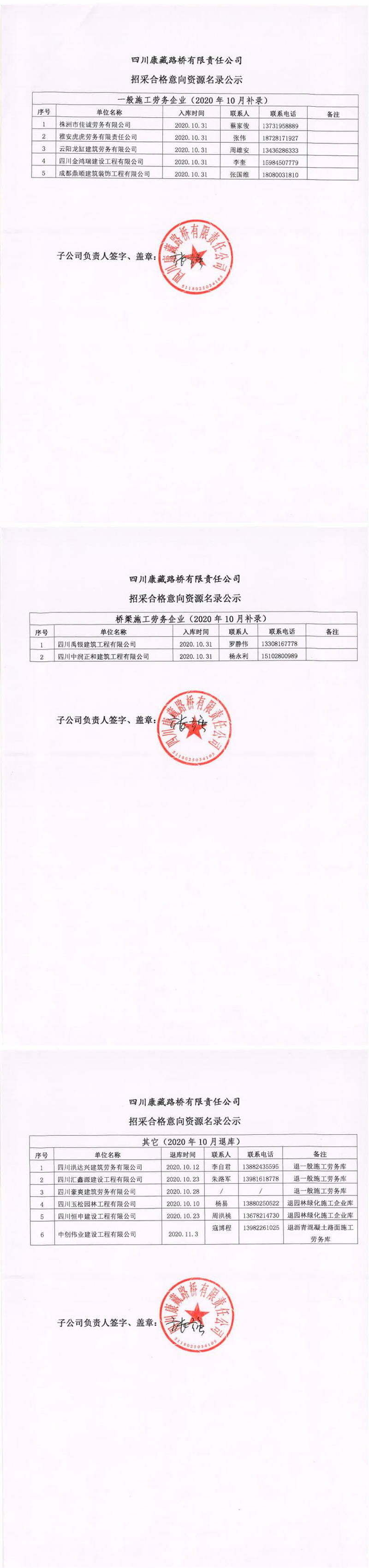 四川康藏路橋有限責(zé)任公司招采合格意向資源名錄公示