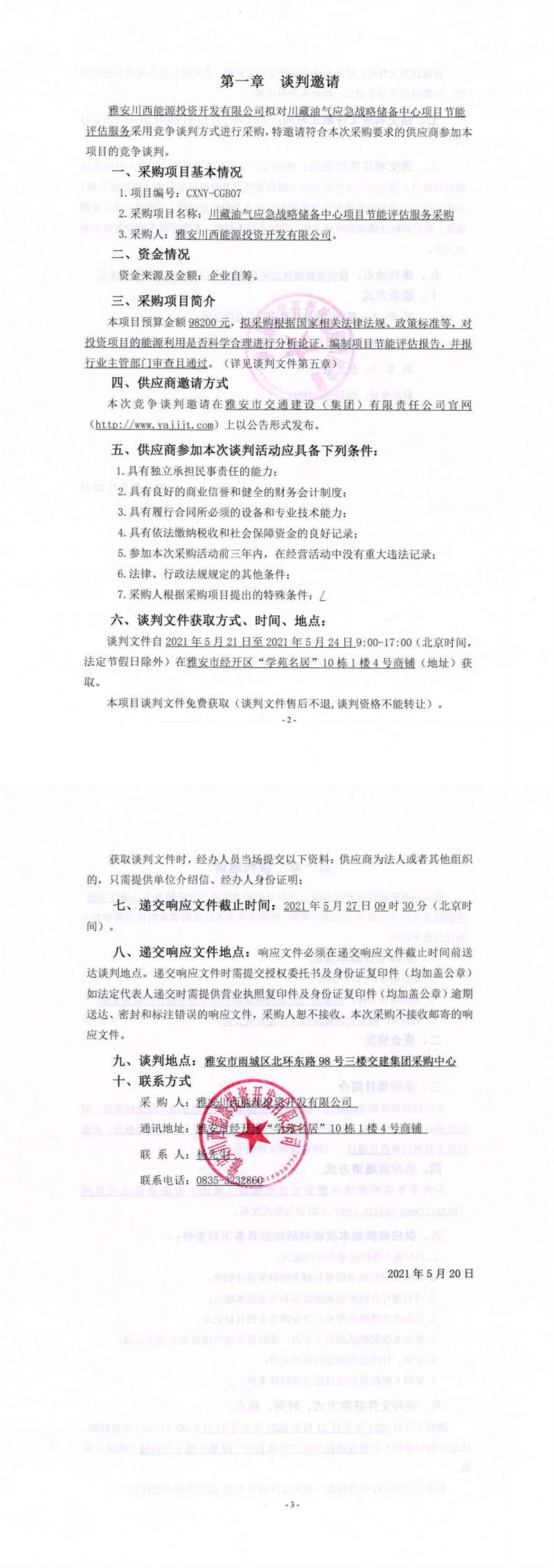 雅安川西能源投資開發(fā)有限公司川藏油氣應(yīng)急戰(zhàn)略儲(chǔ)備中心項(xiàng)目節(jié)能評估服務(wù)采購競爭談判公告