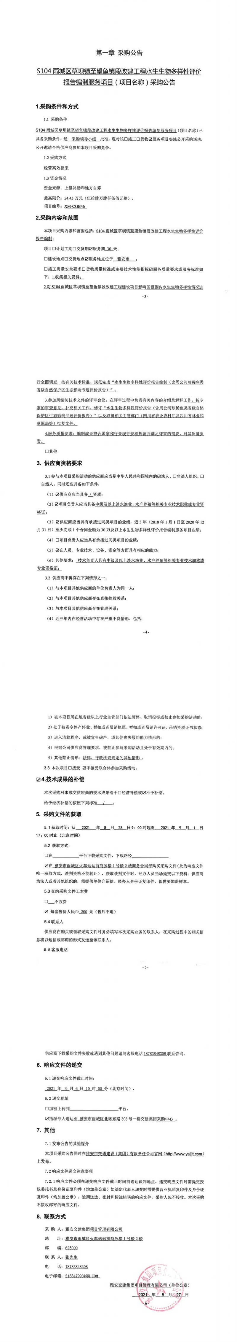 雅安交建集團(tuán)項(xiàng)目管理有限公司S104雨城區(qū)草壩鎮(zhèn)至望魚鎮(zhèn)段改建工程水生生物多樣性評價報(bào)告編制服務(wù)項(xiàng)目采購公告