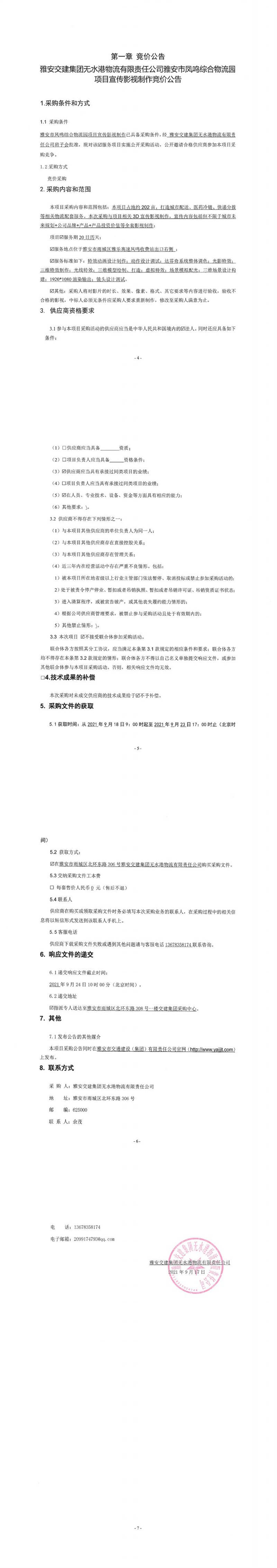 雅安交建集團(tuán)無水港物流有限責(zé)任公司雅安市鳳鳴綜合物流園項(xiàng)目宣傳影視制作競價(jià)公告