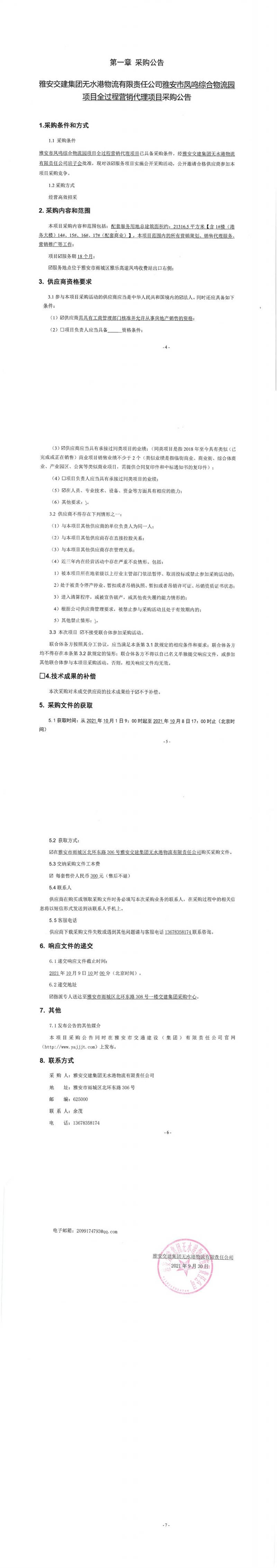 雅安交建集團(tuán)無(wú)水港物流有限責(zé)任公司雅安市鳳鳴綜合物流園項(xiàng)目全過(guò)程營(yíng)銷代理項(xiàng)目采購(gòu)公告
