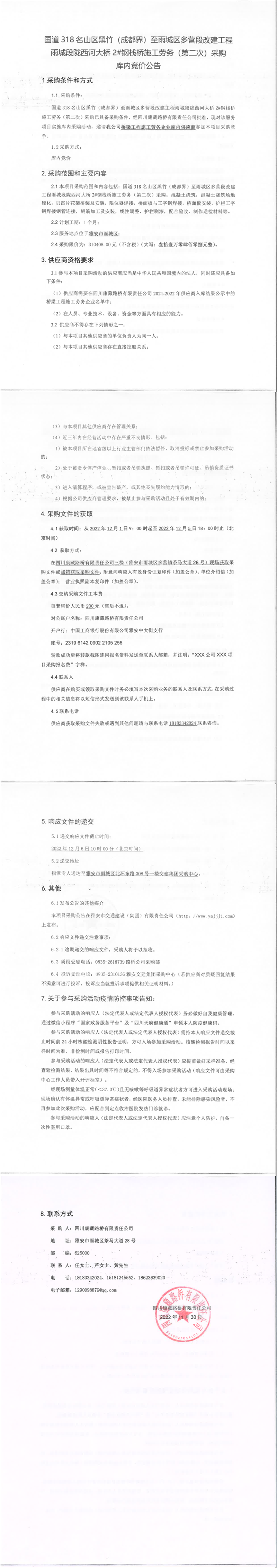 四川康藏路橋有限責(zé)任公司國道318名山區(qū)黑竹(成都界)至雨城區(qū)多營段改建工程雨城段隴西河大橋2#鋼棧橋施工勞務(wù)(第二次)采購庫內(nèi)競價公告