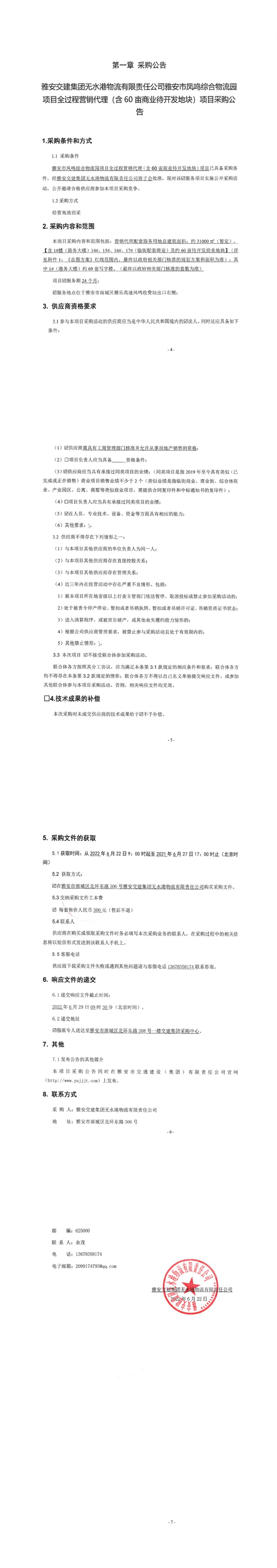 雅安交建集團(tuán)無(wú)水港物流有限責(zé)任公司雅安市鳳鳴綜合物流園項(xiàng)目全過(guò)程營(yíng)銷代理(含60畝商業(yè)待開(kāi)發(fā)地塊)項(xiàng)目采購(gòu)公告