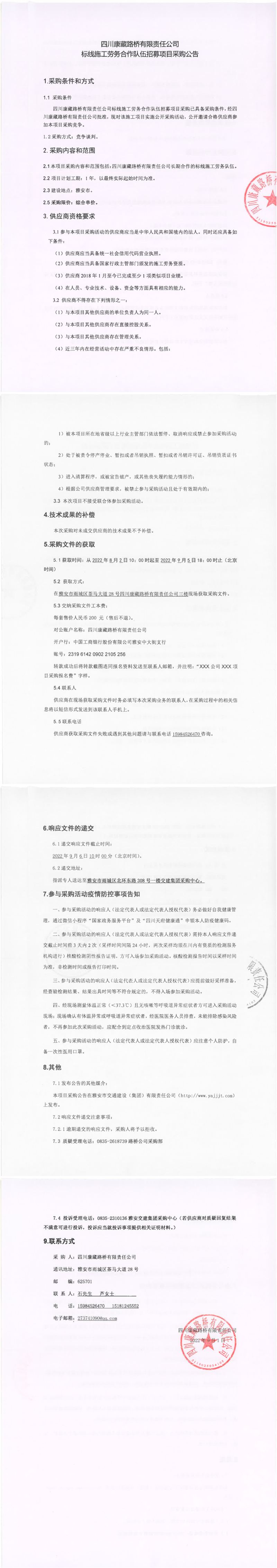 四川康藏路橋有限責任公司標線施工勞務合作隊伍招募項目采購公告