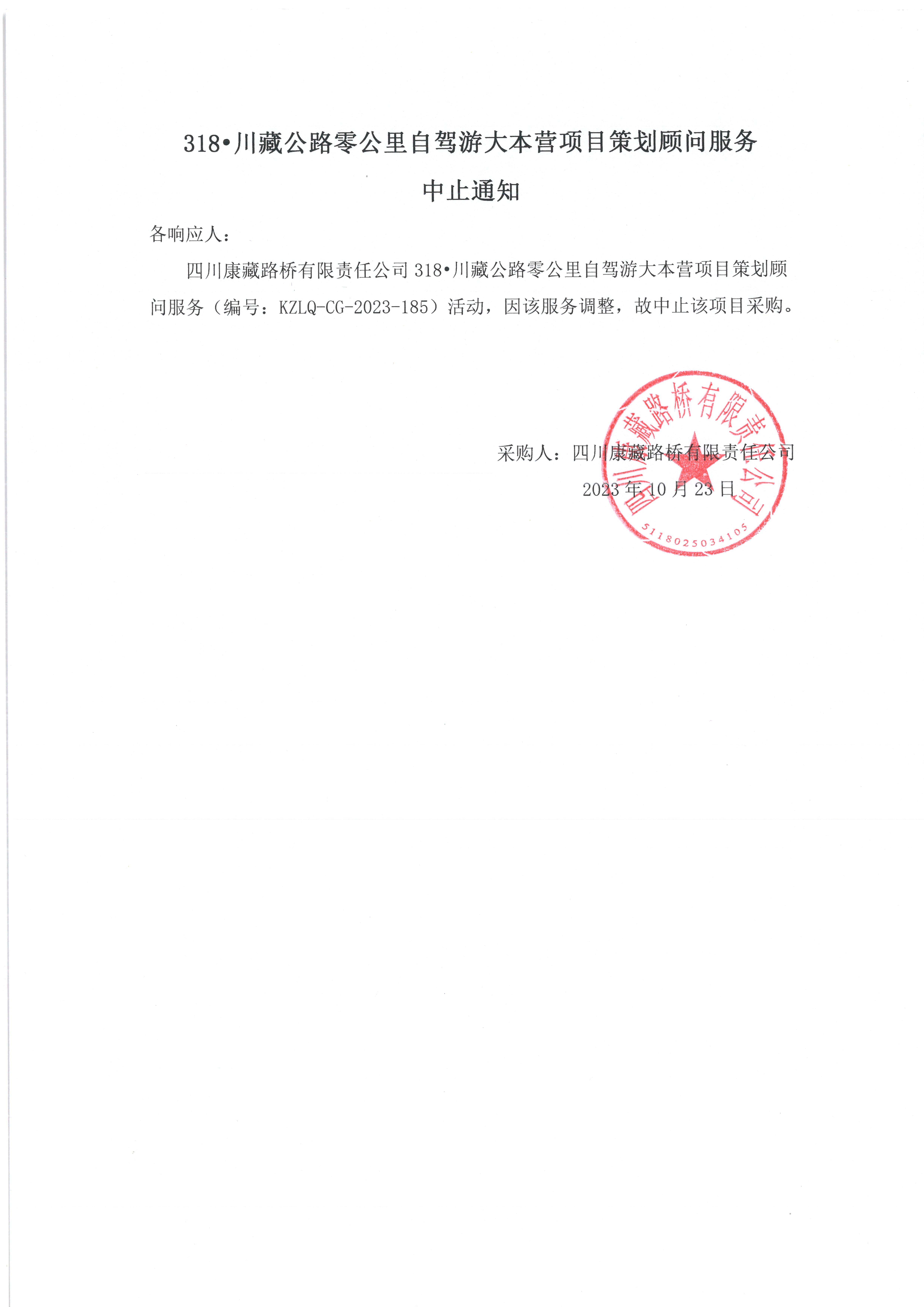 四川康藏路橋有限責任公司318•川藏公路零公里自駕游大本營項目策劃顧問服務(wù)中止通知