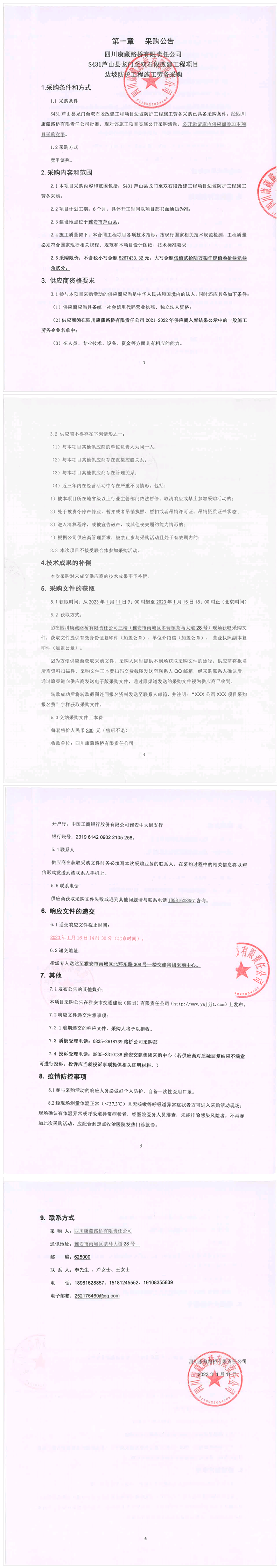 四川康藏路橋有限責任公司S431蘆山縣龍門至雙石段改建工程項目邊坡防護工程施工勞務(wù)采購競爭談判結(jié)果公示