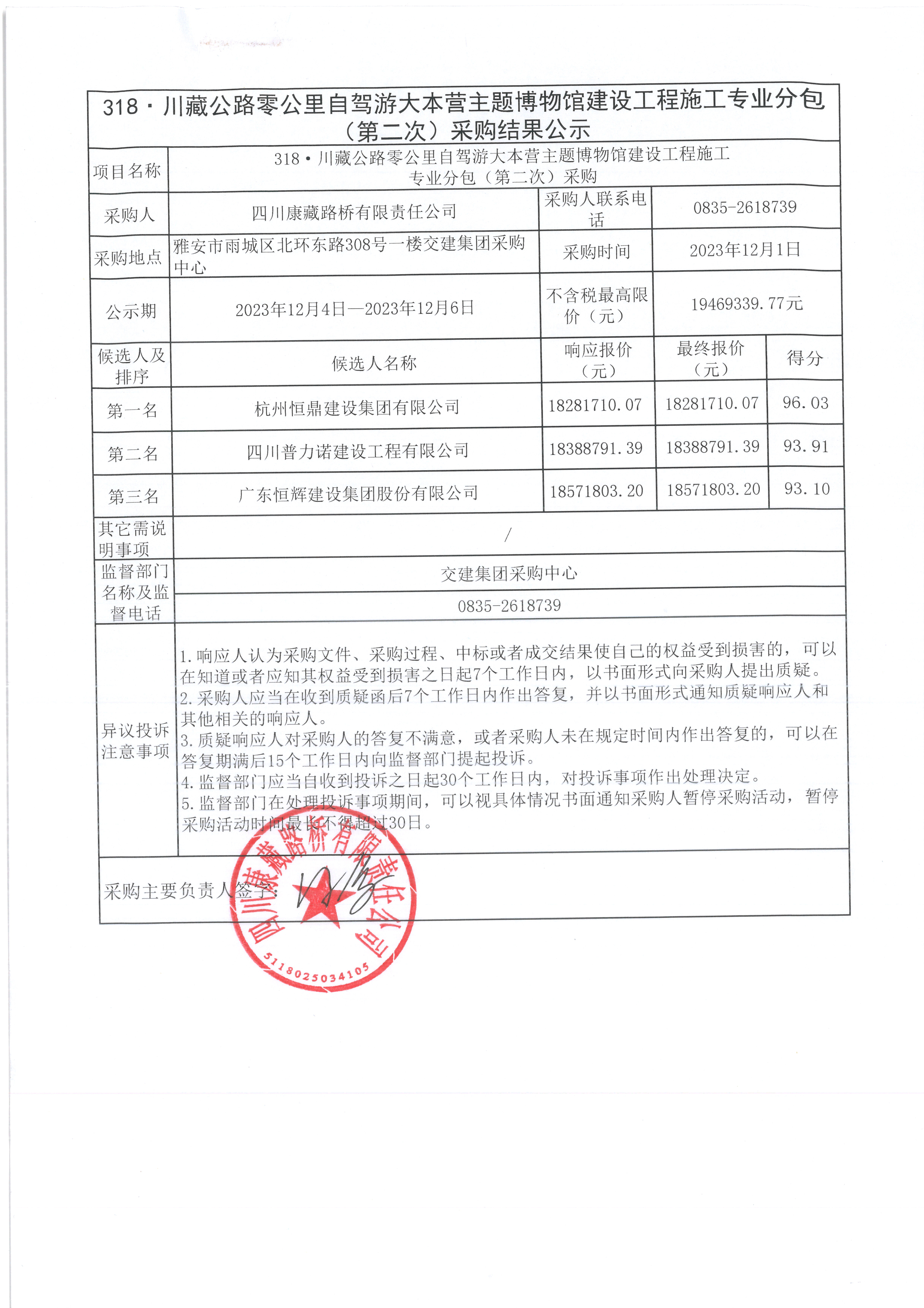 四川康藏路橋有限責(zé)任公司318·川藏公路零公里自駕游大本營(yíng)主題博物館建設(shè)工程施工專(zhuān)業(yè)分包 (第二次)采購(gòu)結(jié)果公示