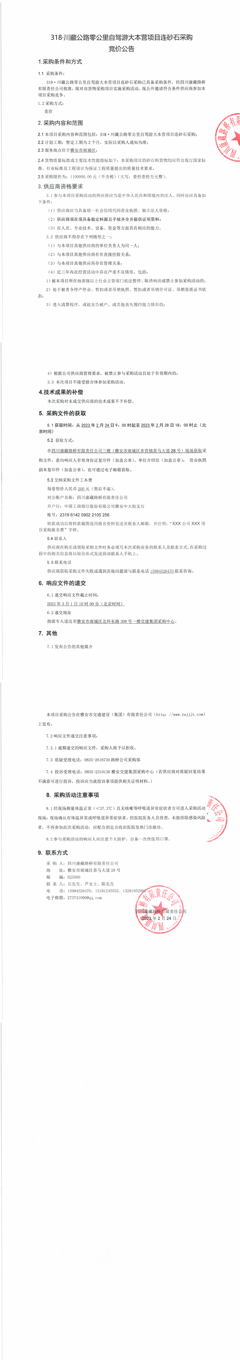 四川康藏路橋有限責(zé)任公司318·川藏公路零公里自駕游大本營項(xiàng)目連砂石采購競(jìng)價(jià)公告