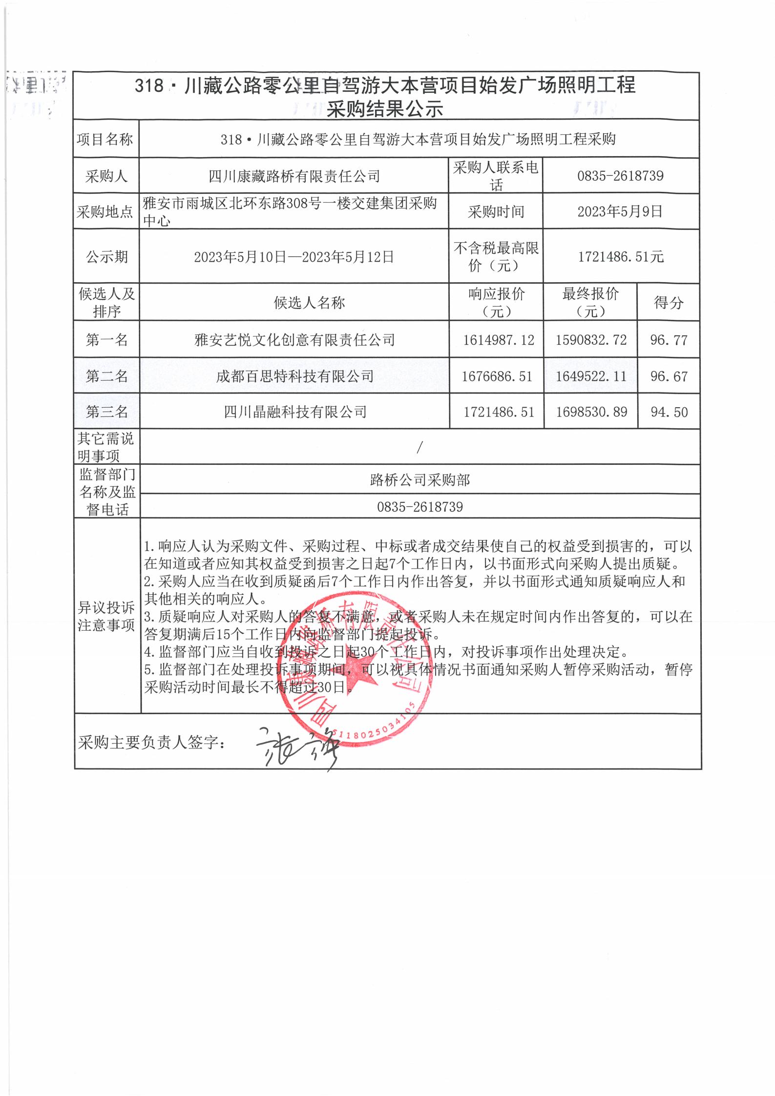 四川康藏路橋有限責(zé)任公司318·川藏公路零公里自駕游大本營(yíng)項(xiàng)目始發(fā)廣場(chǎng)照明工程采購(gòu)結(jié)果公示