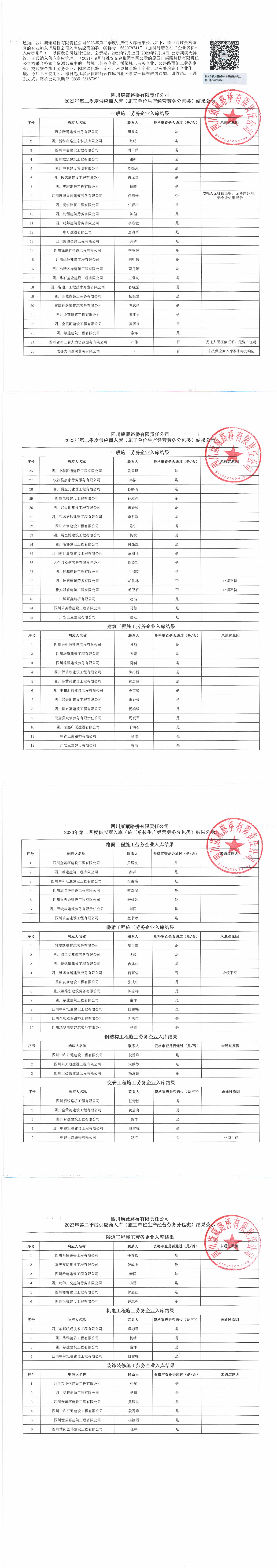 四川康藏路橋有限責任公司2023年第二季度供應商入庫(施工單位生產(chǎn)經(jīng)營勞務分包類)結(jié)果公示