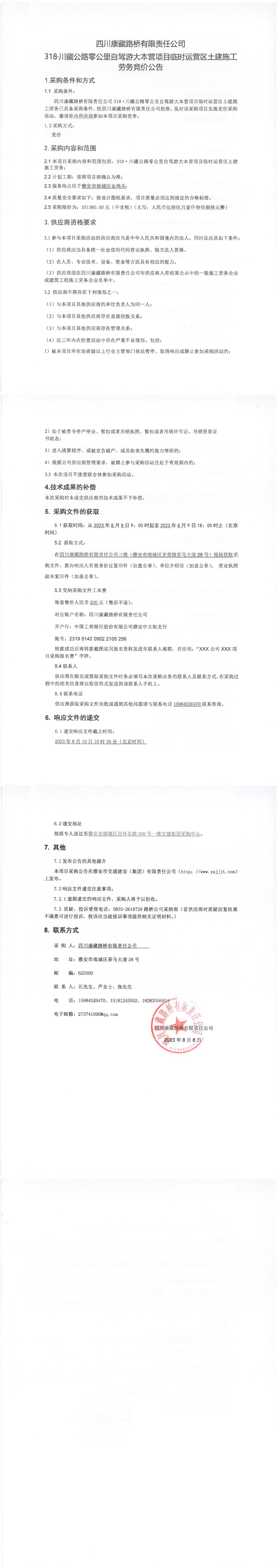 四川康藏路橋有限責(zé)任公司國(guó)道318名山區(qū)黑竹(成都界)至雨城區(qū)多營(yíng)段改建工程二標(biāo)段塔吊租賃采購(gòu)競(jìng)價(jià)公告