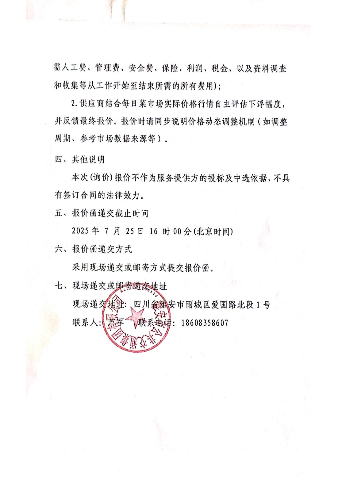 關(guān)于雅安市公共交通集團有限公司食堂農(nóng)產(chǎn)品配送服務采購限價的詢價函