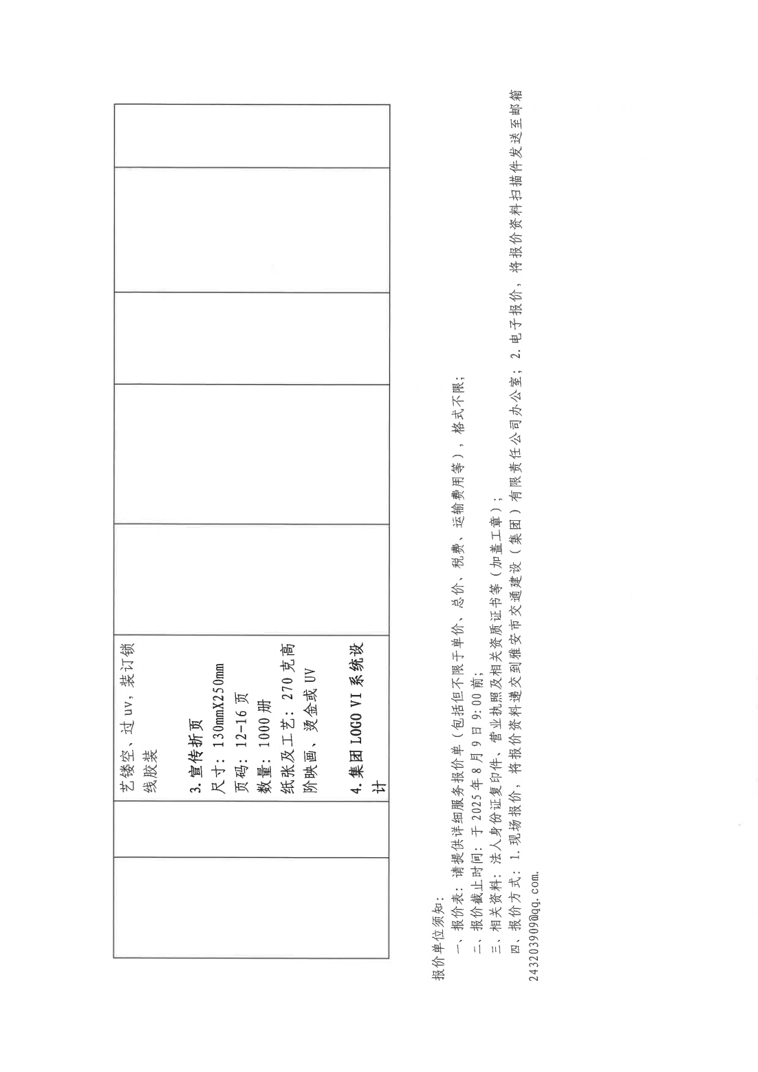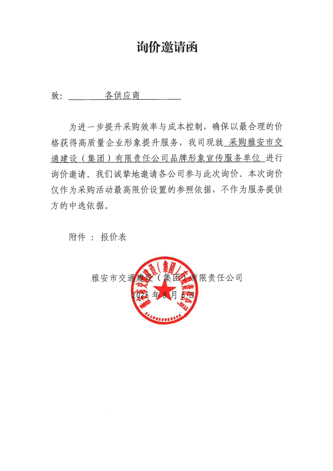 關(guān)于采購集團品牌形象宣傳服務單位的詢價函