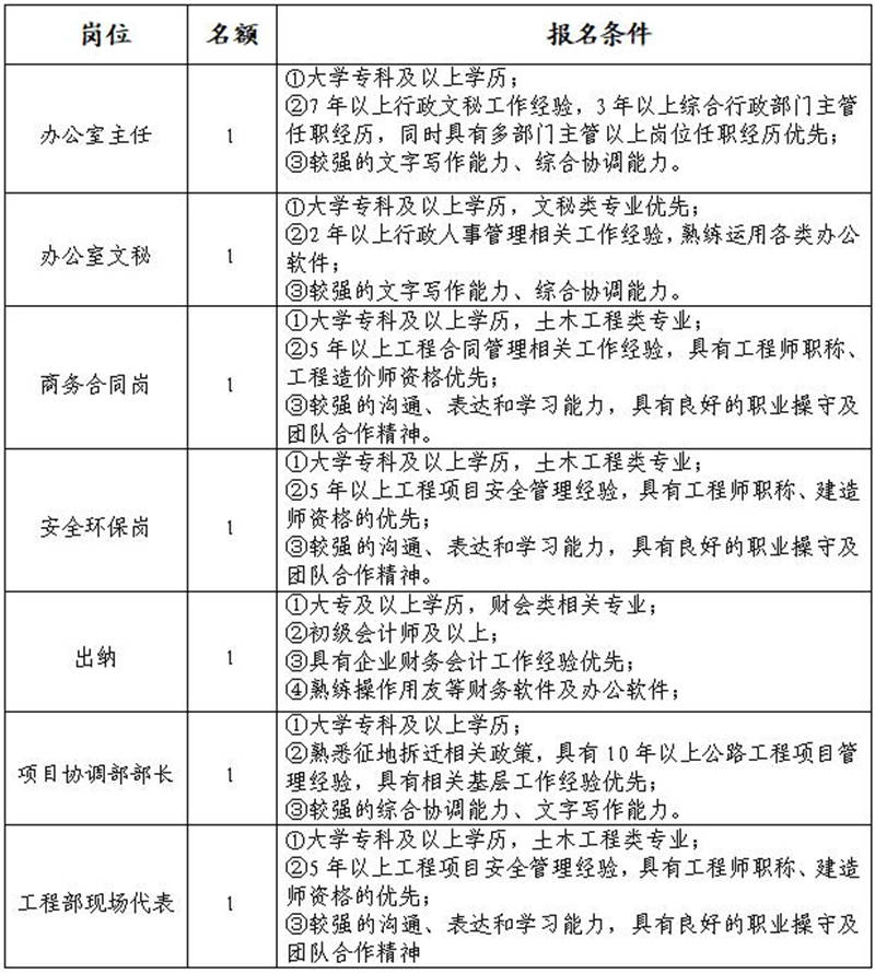 公告發(fā)布在雅安市交通建設(shè)(集團(tuán))有限責(zé)任公司網(wǎng)站,自發(fā)布之日起即可報(bào)名,截止時(shí)間為2019年 1 月6日18:00。