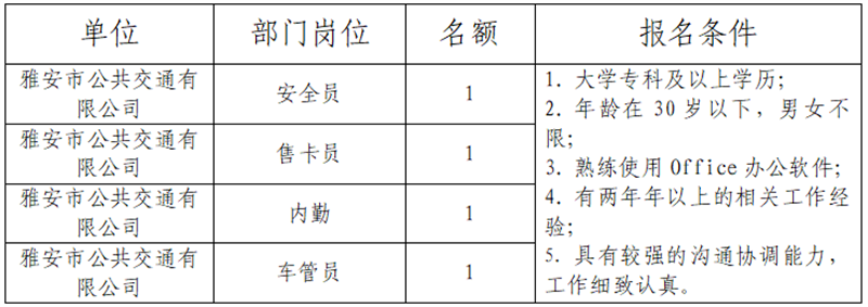 雅安交建集團(tuán)關(guān)于公開招聘所屬子公司工作人員的公告(公交公司)