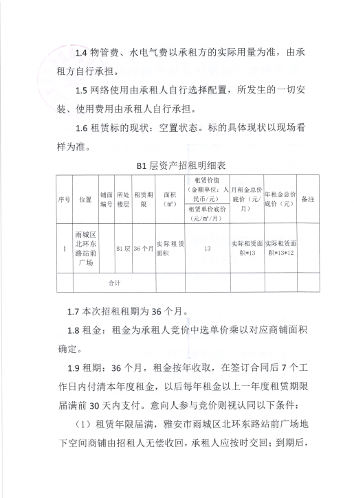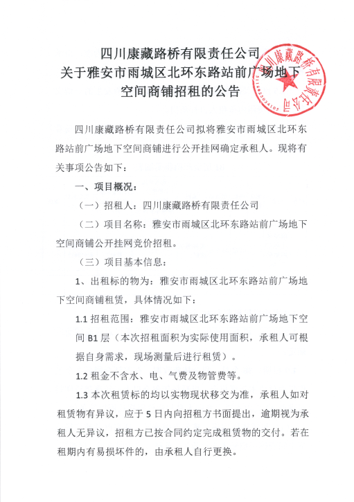 四川康藏路橋有限責任公司關于雅安市雨城區(qū)北環(huán)東路站前廣場地下空間商鋪招租的公告