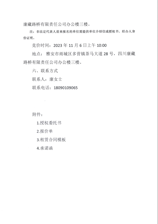 雅安交建資產經營管理有限公司雨名快速通道黑碾子場地招租公告