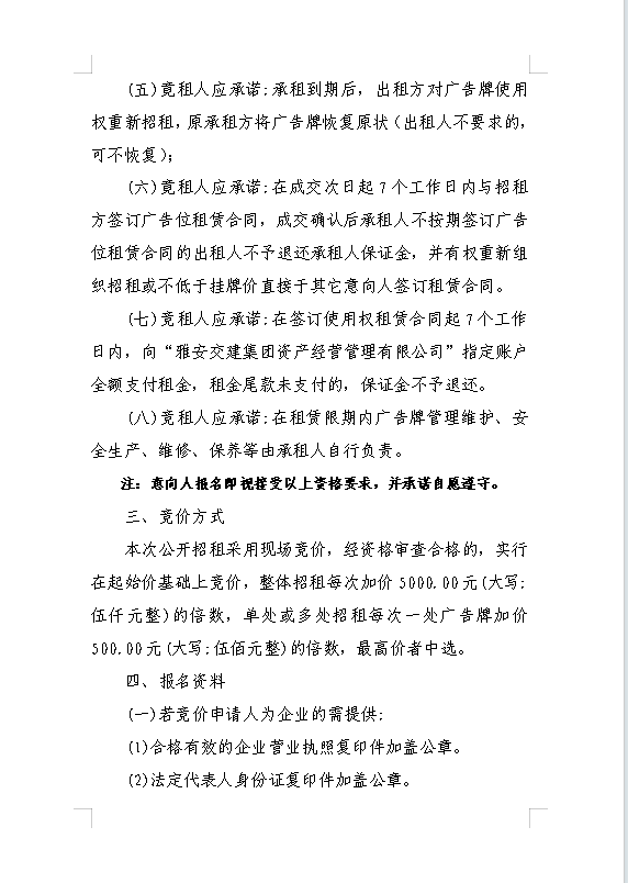 雅安交建集團(tuán)資產(chǎn)經(jīng)營管理有限公司關(guān)于戶外廣告位競(jìng)價(jià)招租的公告附件