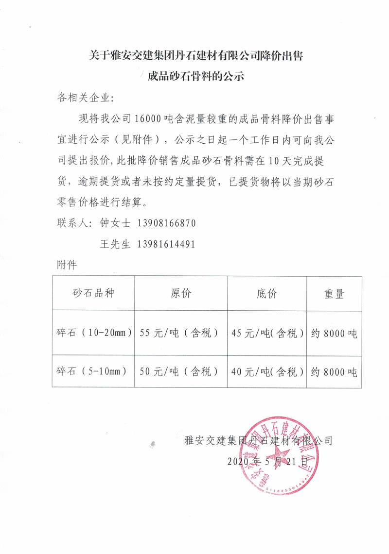 ÑŰ²½»½¨¼¯ˆF(tu¨¢n)ß\ͨ¹«Ë¾É°Ê¯¹ÇÁÏäNÊÛƒr¸ñÇé›r±í£¨2020.5.15£©