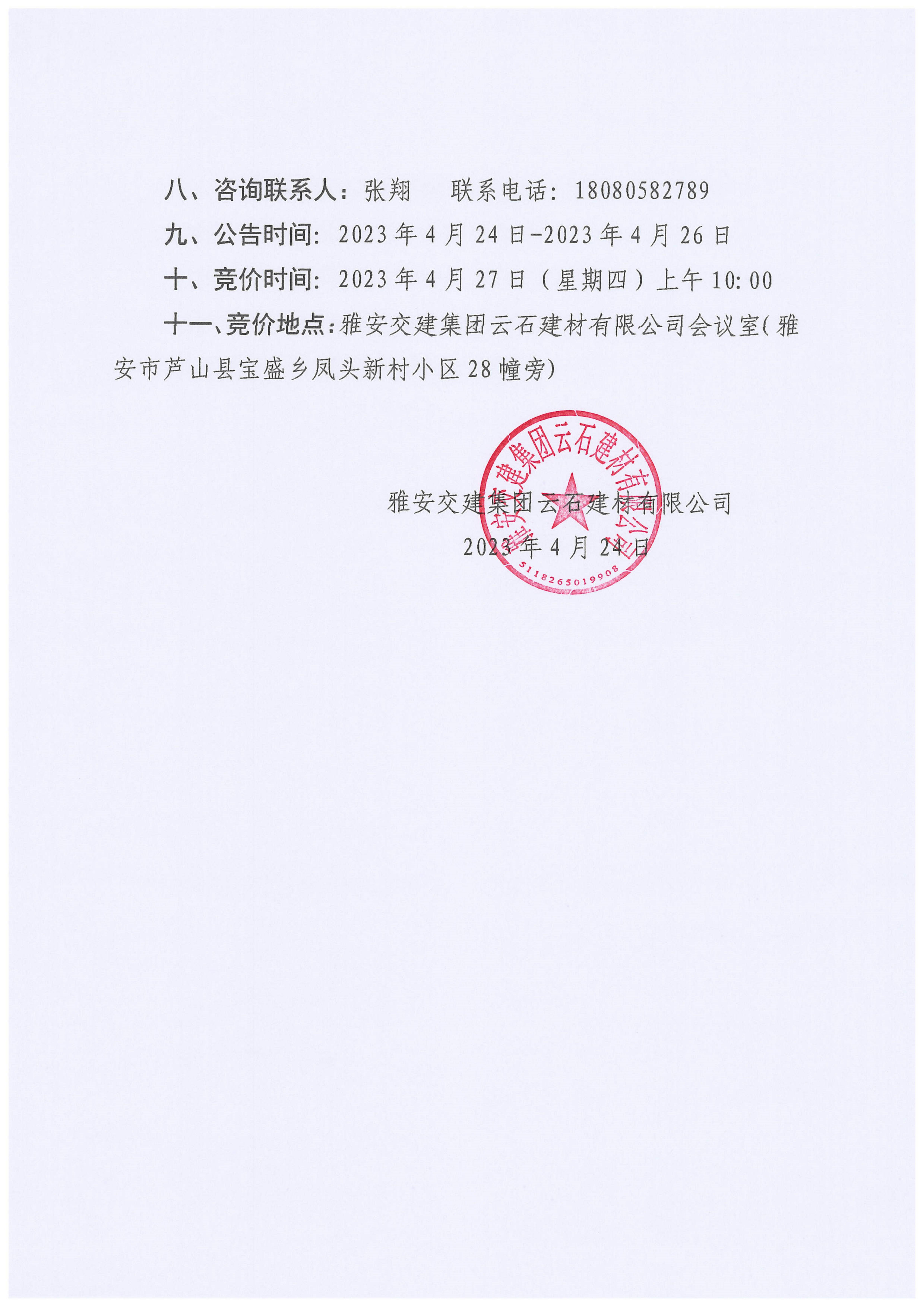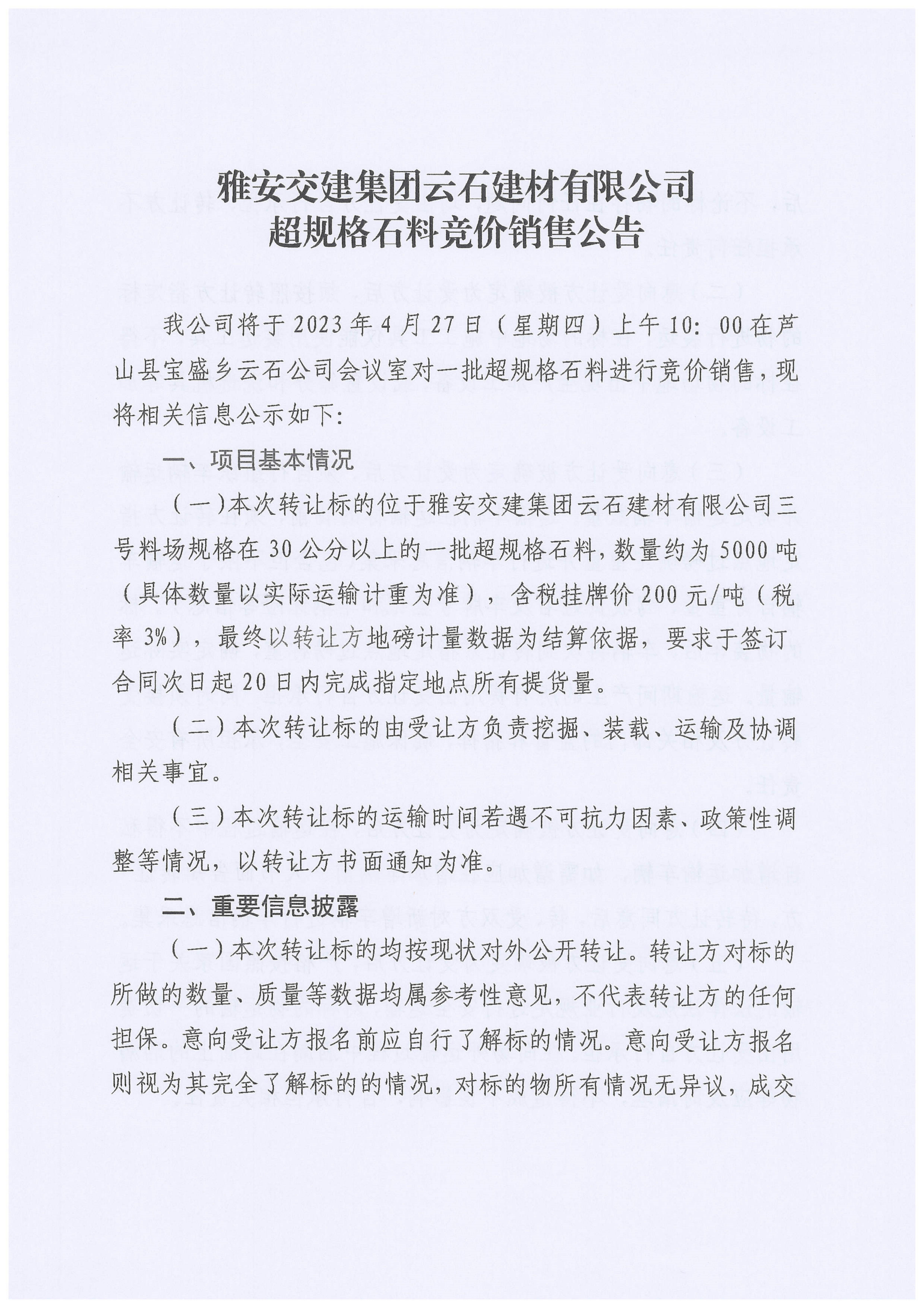 雅交建云石建材有限公司超規(guī)格石料競價銷售公告(2023-4-24)