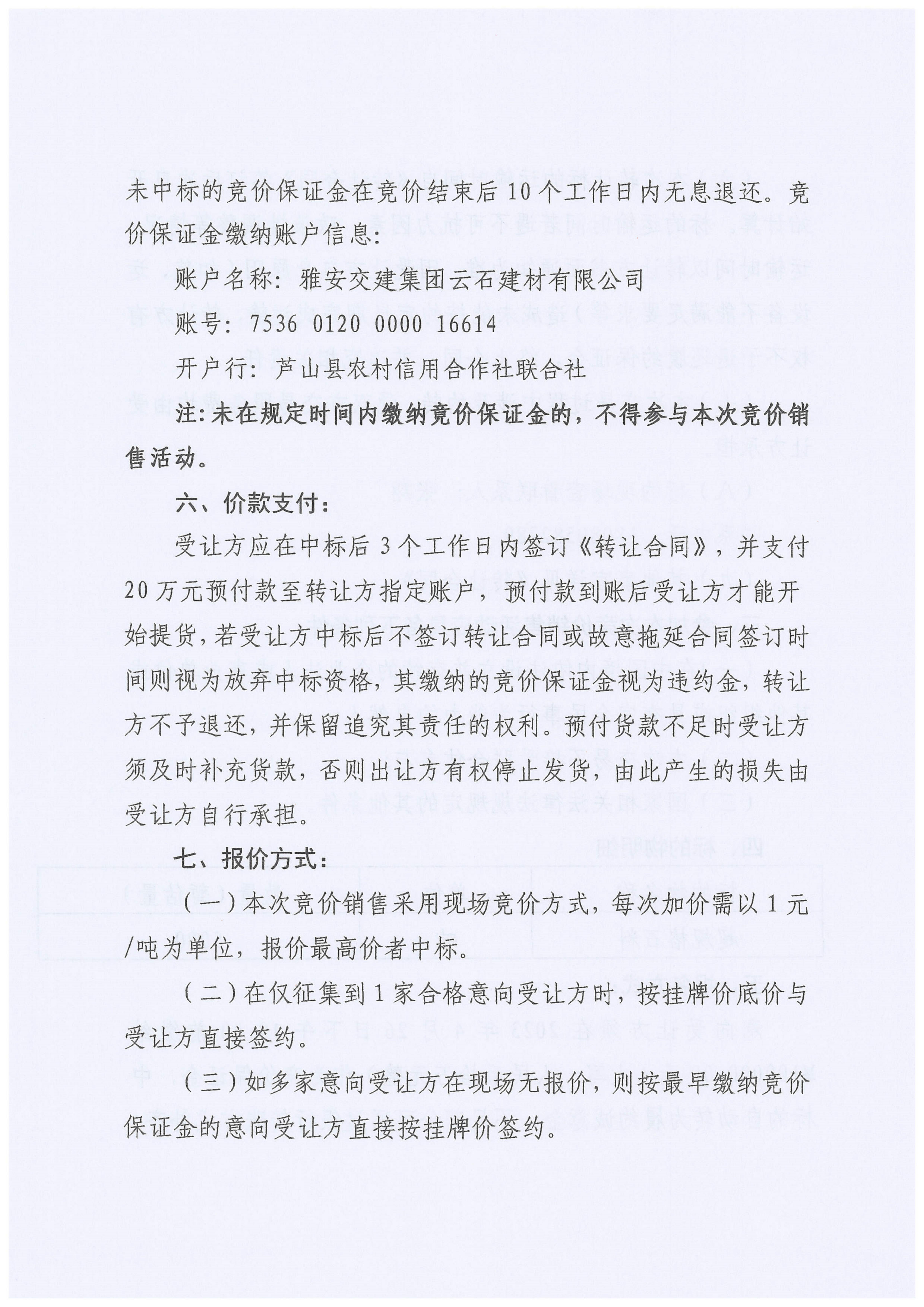 雅安交建集團興寶投資有限公司靈關鎮(zhèn)代碑寺土地整理項目5萬噸可利用棄渣競價銷售公告(2023.4.20)